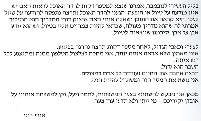 המכתב היומי האחרון של תרצה, נכתב בבוקר יום הפיגוע